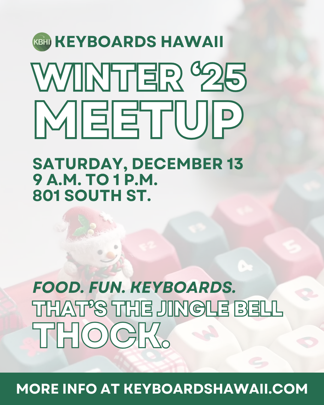 Aloha! We are Keyboards Hawaii, a local group of custom keyboard enthusiasts primarily gathered around the island of Oahu.